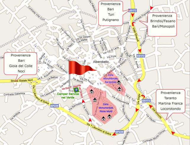 Il Camper Service “Nel Verde”, area di sosta all’aperto – tra le fronde degli ulivi e alla sana aria fresca di collina – ha sede nella splendida Alberobello, cittadina famosa in tutto il mondo per le costruzioni coniche chiamate “Trulli”, dal 1996 patrimonio mondiale UNESCO e dal 2010 Comune “Bandiera Arancione” (marchio di qualità turistico ambientale del “Touring Club Italiano”).